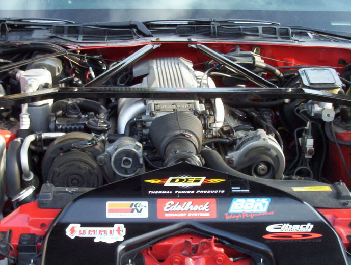 AFPR@47PSI Edelbrock TES headers, Portat plenum, Chip, Airfoil, rensad cat, KN filter, TB Coolant Bypass, S�nkt med Eibach sportline.Edelbrock struttower brace.