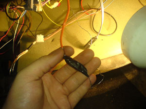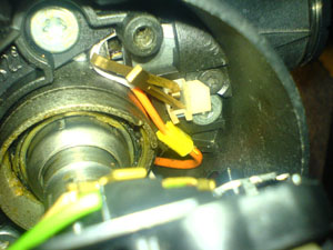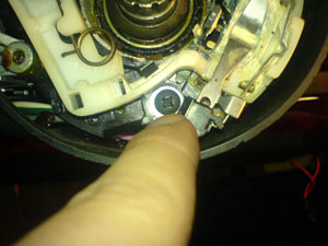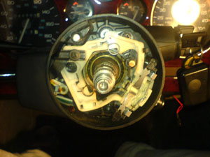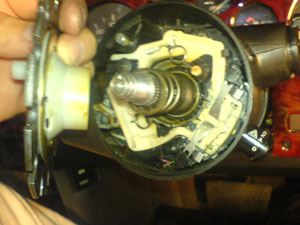 VATS kabel dragen genom rattstången med hjälp av en ståltråd