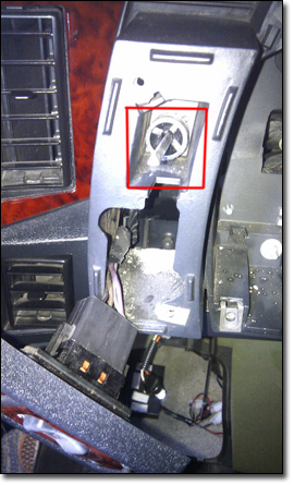 Panelen loss och bulten till switchen synlig.